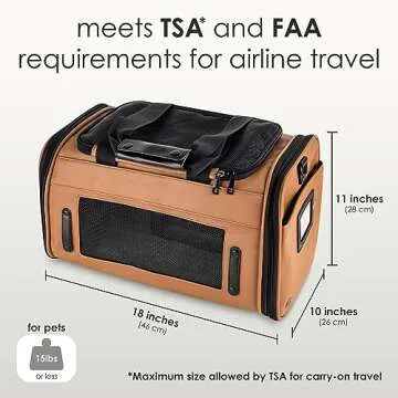 Show moreIntroducing the TSA Airline Approved PU Leather Luxury Pet Carrier, the perfect blend of style, comfort, and functionality designed specifically for small dogs and cats weighing up to 15lbs. Crafted with premium leatherette and a reinforced steel frame, this pet carrier promises durability that stands the test of time, whether you're embarking on a long-haul flight or a spontaneous car trip. Not just a beautiful accessory, its chic design ensures your furry friend travels in luxury, while you enjoy the sleek look of a high-end carry on!