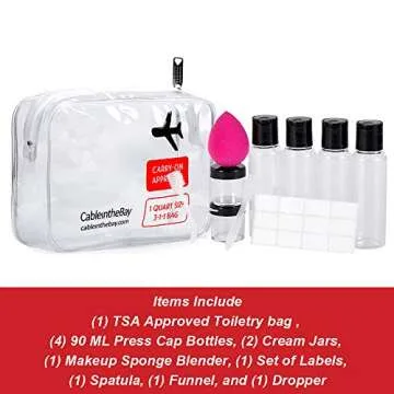 TSA Approved Clear Travel Toiletry Bag-Quart Sized with Zipper-Airport Airline Compliant Bag/Bottles-Men's/Women's 3-1-1 Kit (Makeup Dobber)