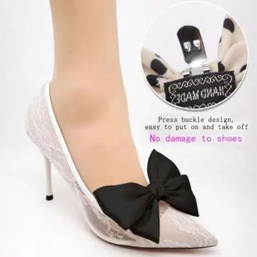 Tsangbaby 2 Pcs Black Satin Bow Shoe Clips Removable Shoe Clips Elegant Wedding Party Shoe Buckle Bag Clothing Hair Accessories for Women Girls