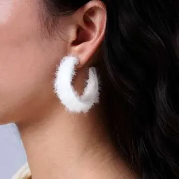 TseanYi Faux Fur Hoop Earrings White Furry Round Hoop Earrings Faux Furry Open Hoop Earrings Velvet C Shape Earrings Funny Statement Earrings Jewelry for Women