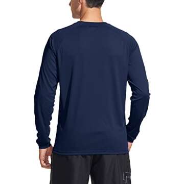 TSLA Men's Rashguard Swim Shirts, UPF 50+ Sun Block, Long Sleeve, Navy Large