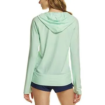 Show moreIntroducing the TSLA Women's Hoodie Zip Front Rash Guard - the ultimate companion for your summer adventures! Designed with a perfect blend of style and functionality, this UPF 50+ long sleeve swim shirt is crafted from a comfortable mix of polyester and spandex, ensuring excellent protection from sun exposure while keeping you stylish on the beach or in the water. Whether you're swimming, snorkeling, or simply soaking up the sun, the full-zip front and attached hoodie provide versatile coverage that can be adjusted to your preference. This lightweight garment is not only easy to put on and take off but also guarantees a soft and breathable fit that flatters all body types.