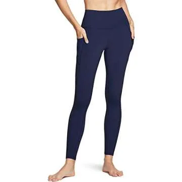 TSLA Women's Tummy Control Yoga Pants with High Waist and Running Yoga Leggings, 4 Way Stretch Athletic Pants for Workout, Pocket Peachy Navy, X-Large