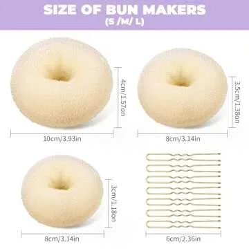 Show moreIntroducing the TsMADDTs Donut Bun Maker, your ultimate hair styling companion to achieve stunning buns with ease! This set includes three versatile donut hair bun makers—Small (6cm), Medium (8cm), and Large (9cm)—designed to meet your varying hairstyling needs. Whether you have thick locks or fine hair, this product ensures that you can create chic and polished hairstyles effortlessly.