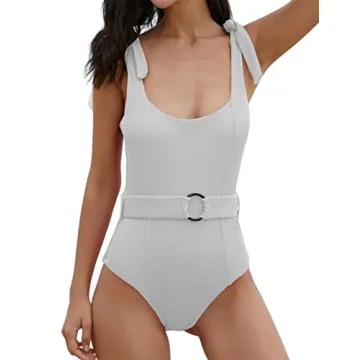 TSMEZA Women's One Piece Swimsuits Belt Tummy Control Bathing Suits Tie Shoulder Swimwear