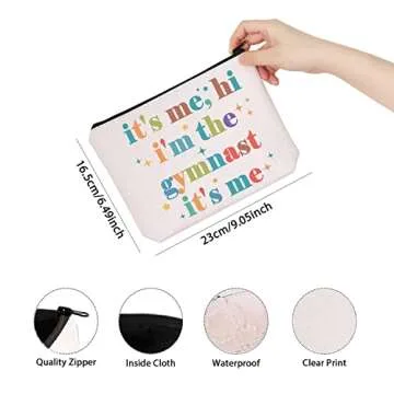 Show moreIntroducing the TSOTMO Gymnast Gymnastics Team Gift – a delightful and multifunctional cosmetic bag that's perfectly tailored for the dedicated gymnast in your life! This charming bag features the playful and empowering slogan, "It's Me, Hi I'm The Gymnast" which resonates with young athletes who embrace their passion and talent. Measuring at a compact 23.5 cm (9.25 inch) x 17 cm (6.69 inch), it’s perfect for on-the-go lifestyles, making it an essential accessory whether heading to training or competing. Crafted from durable canvas with a reliable metal zipper, the bag not only makes a stylish statement but also withstands the rigors of daily use. With its lightweight design and easy-to-clean material, this bag is both practical and fashionable, ensuring that your gymnast maintains an organized routine while showcasing her love for the sport!