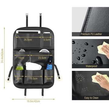 Tsumbay Car Backseat Organizer with Tablet Holder,9 Storage Pockets Foldable Table Tray Seat Back Protectors Kick Mats -PU Leather 1Pck