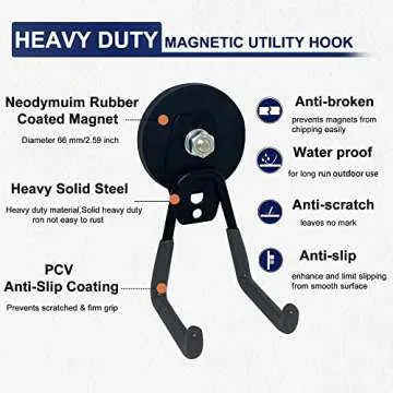 Equipped with 6 rare earth magnets within each base, these hooks can support a total weight of up to 22 lbs. This strength allows you to hang a variety of items without fear of them falling, making them ideal for garage tools, garden equipment, or anything else you need at hand. The versatility of these magnetic hooks means that they can be used in a multitude of environments, including kitchens, garages, warehouses, and offices.