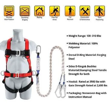 TT TRSMIMA Safety Harness Fall Protection Kit - Full Body Roofing harnesses with Shock Absorbing Lanyard Updated Waist Paded (red)