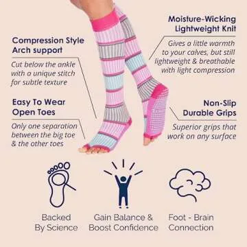 Tucketts Thigh Highs Knee High Yoga Socks, Toeless Long Socks, Non Slip Skid Grippy Socks for Yoga, Pilates, Barre, Ballet, Dance - Knee High Style,Pink,Fits woman size US 6-9.5