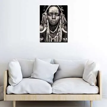 Tucocoo Black and White Artwork for Walls African Fashion Women Pictures Indigenous Civilization Art Paintings 1 Piece Canvas Modern Artwork Framed Ready to Hang(12''x16'')