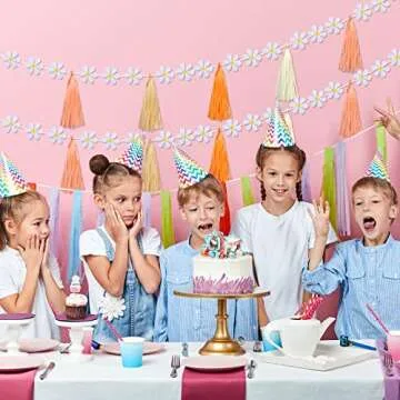 Tudomro 2 Pcs Groovy Boho Daisy Garland with 20 Pcs Paper Tassels, Hippie Felt Banner Artificial Party Decorations for Wedding Birthday Party