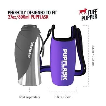 Tuff Pupper PupFlask Insulated Neoprene Dog Water Bottle Holder Sling with Wide Adjustable Shoulder Strap, Great for Travel, Walking, Hiking, Portable Pet Water Bottle Holder (27 OZ, Ultra Violet)