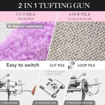 Show more Unveil your creativity with the ultimate tool for fiber art enthusiasts – the innovative 2 in 1 Tufting Gun. This remarkable device allows you to seamlessly switch between cut pile and loop pile, giving you the freedom to craft stunning, personalized designs. With an effortless replacement process for the scissors and blades, creating unique rugs and artworks becomes not only possible but also enjoyable. Each tufting gun comes with exclusive skin stickers that perfectly fit the body, allowing you to customize your tool’s aesthetic with vibrant personal touches.