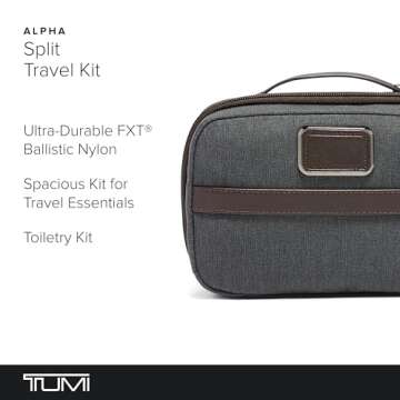TUMI Alpha Split Travel Kit - Compact Toiletry Bag for Men & Women - Features Removable Leather Handle & 3 Zip Pockets