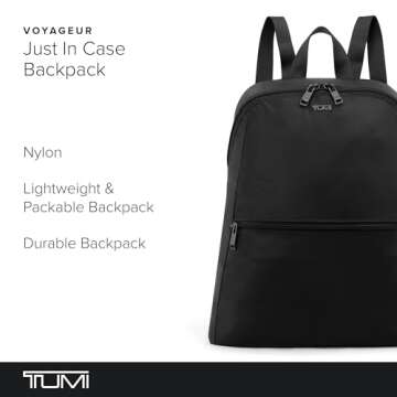 TUMI - Just In Case Foldable Backpack - Lightweight, Compact Travel Backpack - For One Bag Travel - 15.5" X 12.3" X 4.5" - Black with Gunmetal Hardware