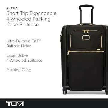 Show more Introducing the TUMI Short Trip Expandable Rolling Luggage, the quintessential travel companion designed to enhance your journeys. Crafted from TUMI's patented FXT ballistic fabric, this suitcase not only exudes a sleek and modern aesthetic but also guarantees long-lasting durability. The expandable main compartment is a game-changer, allowing you to pack efficiently, whether it’s a business trip or a leisurely getaway. With ample space for garments, accessories, and more, your travel essentials will always be at your fingertips.