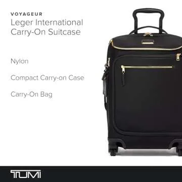 Discover the perfect travel companion with the TUMI Voyageur Leger International Carry-On, your ultimate blend of style and functionality. This lightweight and innovative travel bag not only embodies elegance with its sleek black and gold design but is also engineered for convenience. Crafted from premium materials, this carry-on is designed to maneuver effortlessly through busy airports, ensuring that you travel in style and comfort. The rugged wheels and stable handle allow...