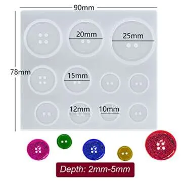 Show more Unleash your creativity with the TuNan 3PCS Button Resin Silicone Molds, designed for crafting stunning and unique buttons. This versatile set includes five sizes (10mm, 12mm, 15mm, 20mm, and 25mm) to cater to all your DIY needs, whether you're an artist, a hobbyist, or just dabbling in home crafts. Made from the highest quality silicone, these molds embody softness and flexibility, allowing you to effortlessly pop out your creations after the resin has cured. The reusability of these molds enhances their value, letting you create beautiful buttons time and again.