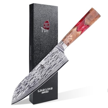 Introducing the ultimate in culinary craftsmanship—a stunning Damascus steel santoku knife that combines artistic beauty with professional functionality. Each knife is thoughtfully constructed from 45 layers of genuine forged steel, enhanced by AUS-10 high carbon super steel to ensure a razor-sharp edge that glides through a variety of food with ease. With its hollow ground dimples, food slide off effortlessly, making chopping, slicing,...