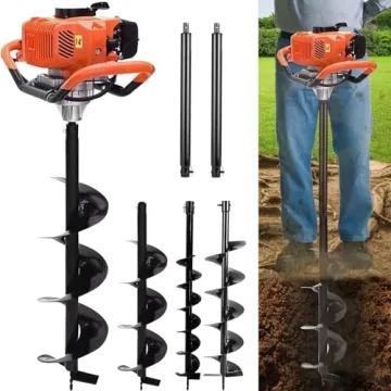 Show moreThe TUOKE 72cc Post Hole Digger is a powerhouse designed for those who demand efficiency and durability in their gardening and farming tools. Featuring a 2-stroke, single cylinder, air-cooled gasoline engine with a displacement of 72CC, this digger is built to tackle the toughest soil conditions with ease. The industry-standard 20mm auger mount and ultra blade system allow for easy changes, sharpening, and replacements, ensuring your tool is always ready for action. With a dual weighted crank and double ringed piston, the digger offers unmatched power and reliability. The full-size heavy-duty right angle drive gearbox, combined with three auger drill bits (4", 8", & 12") and two 60mm extension rods, provides versatility for a variety of uses and applications.