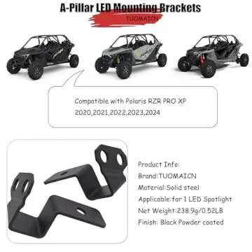 While many mounting brackets on the market claim compatibility with UTVs, the **TUOMAICN UTV A-Pillar LED Spotlight Work Light Mounting Bracket** stands out thanks to its dedicated design for the Polaris RZR PRO R. Unlike generic models, our brackets are crafted from high-quality manganese steel with a protective coating, ensuring against wear and tear. Although some users noted a need for minor adjustments, this is often the case with aftermarket parts, which allows for a custom fit that enhances security. Many competitors do not provide this level of durability, making TUOMAICN's offering a superior choice for serious off-roaders.