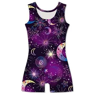 TUONROAD Gymnastics leotard with shorts for girls Biketards purple galaxy 7-8 7/8 years old sparkly