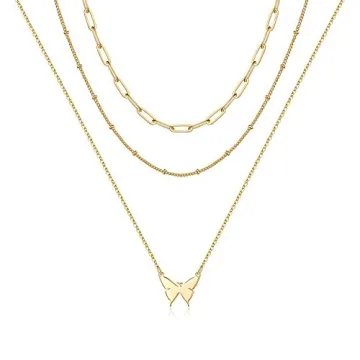 Turandoss 14K Gold Plated Layered Butterfly Necklace - Layering Link Chain Necklaces