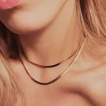 Turandoss Dainty Gold Thick Snake Choker - 14K Gold Paperclip Flat Herringbone Snake Chain Choker Paperclip Chain for Women 4MM Snake Chain Necklace
