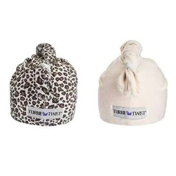 Turbie Twist Microfiber Hair Towel Animal Print 2 Pack (Tan-Leopard)