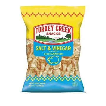 Show more Indulge in the extraordinary taste of Turkey Creek Pork Rinds, expertly flavored with a bold Salt and Vinegar profile that delivers an undeniably crunchy experience. With each bite, you'll savor the perfect balance of flavor and texture, making it an ideal snack for those who appreciate gourmet quality. These pork rinds are not just any snack; they are a sensational treat crafted with care. Each batch is made with high-quality ingredients, ensuring you relish every bite of their light, airy, and crunchy goodness.