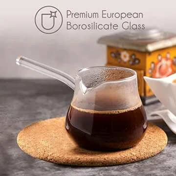 Show more Discover the essence of flavor and craftsmanship with our Turkish Coffee Pot Borosilicate Glass, a versatile kitchen essential that transcends the ordinary. Perfectly designed for making a range of beverages, this traditional ibrik enables you to brew genuine Turkish coffee, steep herbal tea, melt chocolate, warm milk, and even prepare sauces or eggs. Constructed from high-quality European borosilicate glass, its unique properties allow it to withstand thermal shock, ensuring it performs beautifully across various cooking methods.