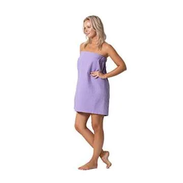 Turkish Linen Women’s Waffle Spa Body Wrap with Adjustable Closure (Small/Medium, Lavender)