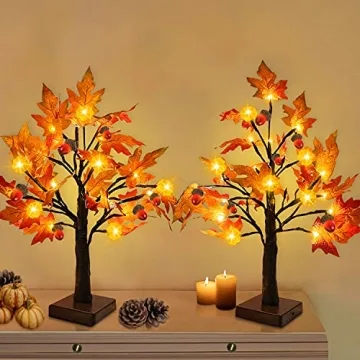 TURNMEON 2 Pack 18 Inch Prelit Fall Maple Tree Thanksgiving