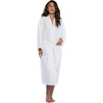 \While there are many robes available, the Unisex Waffle Spa Robe stands out with its unique lightweight waffle design. This feature enhances its water absorbency over conventional terry cloth robes, providing comfort without the bulk, making it suitable for all seasons.