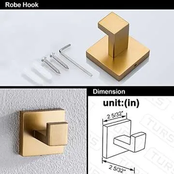 TURS Brushed Gold 3-Piece Bathroom Hardware Set Stainless Steel Gold Hand Towel Holder Toilet Paper Holder Towel Hook Wall Mounted.