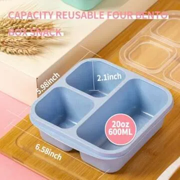 TurtingAs 4 Pack Snack Containers - Eco-friendly Bento Box with 3 Compartments