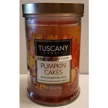 Show moreIntroducing the Tuscany Candle Limited Edition Pumpkin Cakes — your ultimate partner for embracing the enchanting essence of fall! This exquisite candle promises a delightful blend of pumpkin, sugar, and baked vanilla that tantalizes your senses and fills your space with warmth. Expertly crafted with essential oils, this 18oz jar candle features two wicks for a robust and even burn, allowing you to experience the comforting aroma for hours. Each candle is presented in a stylish jar, perfect for adding a touch of seasonal charm to any room.