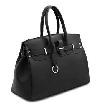 Tuscany Leather TLBag Leather handbag with golden hardware Black