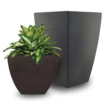 Introducing the Tusco Products MSQ16BK Modern Square Garden Planter, a stunning addition to any indoor or outdoor space. Crafted from high-quality rotation molded plastic, this 16-inch modern square planter is not only compact and stylish but also built to last. Its sleek black finish provides an elegant touch, making it perfect for showcasing your favorite plants or faux trees. The planter's design emphasizes durability and resilience, ensuring that it withstands the test...