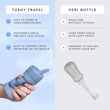 When compared to competitors, the upgraded Tushy bidet stands out with its unique 3-point spout, enhancing user control over water direction and pressure. This premium feature allows for an effective clean and is more efficient than traditional portable bidets.