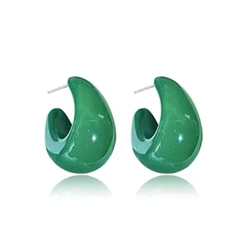 Step into the world of chic elegance with the TUYRIEDSA Chunky Green Hoop Earrings. Crafted from premium acrylic materials and designed to be lightweight, these earrings are the perfect blend of style and comfort. Their unique shape, a trendy waterdrop hollow design, catches the eye and effortlessly complements both casual and formal outfits. Hypoallergenic sterling silver posts ensure safe wear, allowing you to flaunt these gorgeous earrings without any worry, even if you...