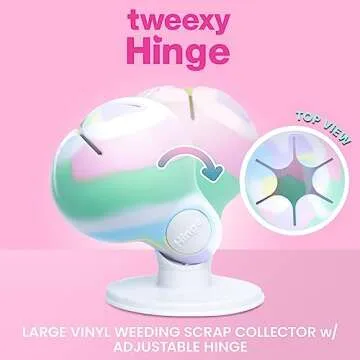 Show more Introducing the Tweexy Hinge Untippable Vinyl Weeding Scrap Collector - your new crafting companion designed for maximum efficiency and ease during your vinyl weeding projects. With its vibrant Unicorn design, this innovative scrap collector is not just a tool; it's a functional piece of art that seamlessly integrates into your crafting studio. Thanks to its unique IntelliStick Technology, the collector is equipped with a powerful suction base that adapts to any surface, ensuring it stays firmly in place as you work. Say goodbye to messy tables and hello to a cleaner workspace with the ability to keep your scraps organized and tidy.