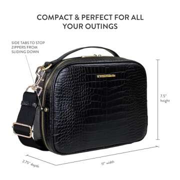 TWELVElittle Luxe Diaper Clutch - Crossbody Diaper Bag includes Portable Changing Pad, Zip Out Pouch organizer and Wipes Case Black Croc