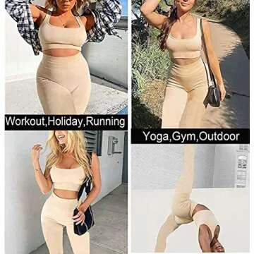 TWFRHC Women's Workout Sets 2 Piece Ribbed Seamless High Waist Gym Outfit Yoga Leggings Sets