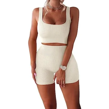 Show moreIntroducing the TWFRHC Women's Workout Sets Ribbed Tank 2 Piece Seamless High Waist Gym Outfit Yoga Shorts Sets, an exceptional choice for active women who prioritize both style and performance. Crafted from a high-quality blend of 90% nylon and 10% spandex, this workout ensemble features a knitted thread elastic fabric that is not only quick-drying but also incredibly breathable. The unique construction ensures wear-resistance and durability, allowing for a comfortable stretch without deformation. Whether you're at the gym, engaging in outdoor activities, or simply enjoying a leisurely day at home, this outfit offers the perfect combination of support, comfort, and style.