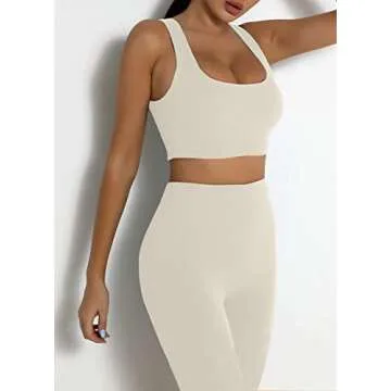 TWFRHC Women's Workout Sets Ribbed Tank 2 Piece Seamless High Waist Gym Outfit Yoga Shorts Sets