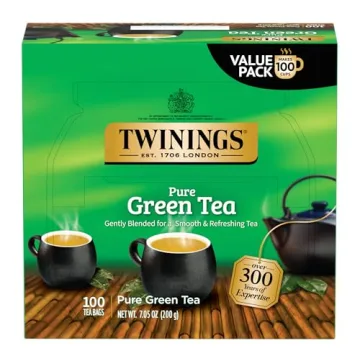Show moreIndulge in the soothing experience of green tea with the exquisite box of 100 Green Tea bags brought to you by Twinings. Each tea bag is a delightful promise of freshness, conveniently sealed to ensure that your tea is always at its finest. As you unwrap a bag and steep it in hot water, you are greeted by a smooth flavor and a refreshing aroma that makes every sip a moment to cherish. The vibrant, honey-yellow hue and invigorating scent are only the beginning of this tea's charm.