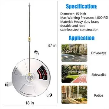 Show moreThe Twinkle Star 15" High Pressure Washer Surface Cleaner is your ultimate partner in transforming outdoor cleaning into a hassle-free task. This top-of-the-line cleaning tool features a generous 15-inch cleaning path, allowing users to efficiently tackle extensive areas such as driveways, patios, decks, and sidewalks. It utilizes innovative hover action technology to glide effortlessly over surfaces, providing an extraordinary ability to lift away dirt and grime at a remarkable pace. Whether you need to prepare your surfaces for sealing or just want them sparkling clean, this cleaner is ready to deliver stellar results.