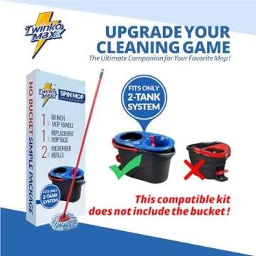 Show more Introducing the Twinko Max Spin Mop Replacement Kit, the ultimate cleaning companion designed specifically for use with the O-Cedar RinseClean 2-Tank System Triangle Microfiber Spin Mop. This comprehensive kit includes a versatile 60-inch 5-section multi-size combo handle, two ultra-soft microfiber mop head refills, and a durable mop base. Experience the collaboration of functionality and convenience that redefines cleaning, ensuring you can maintain spotless floors with minimal effort.